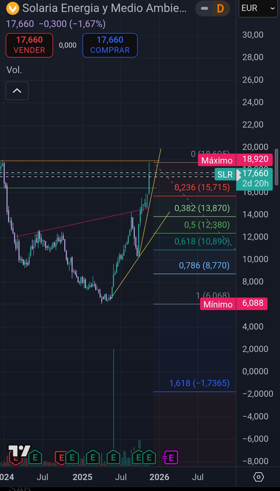 La línea naranja es la zc bajista de todos los tiempos. La rosa la clavícula del hchi. Y la verde un soporte relevante (se ve mejor mirando atrás). La cuestión Indio sería que el retroceso fibo solo podría ser hasta el 0,38 y si lo recupera rápidamente. De lo contrario el hchi quedaría anulado y habría que reevaluar el escenario, llegando incluso a ser todo esto un simple rebote del canal macro bajista. De hecho incluso el 0,23 nos volvería a meter dentro de dicho canal y por debajo de la alcista de largo plazo. Eres libre de decirme todo lo que he dicho mal xdd