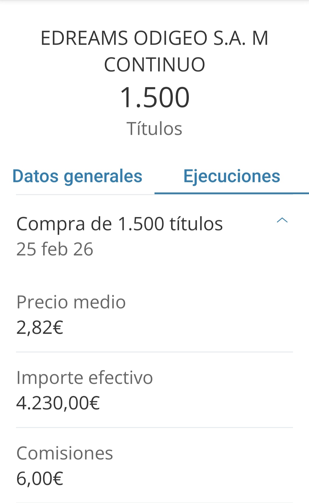 Lo que os comentaba, he puesto la orden 2.85 por que pensaba que se iba, cuando he terminado de ponerla había subido 2.87 entra en subasta y veo que marcaba 2.95 ha comenzado la subasta y digo se fue, y después veo que se han ejecutado todas a 2.82 aunque baje mañana pienso que alargó es muy buen precio