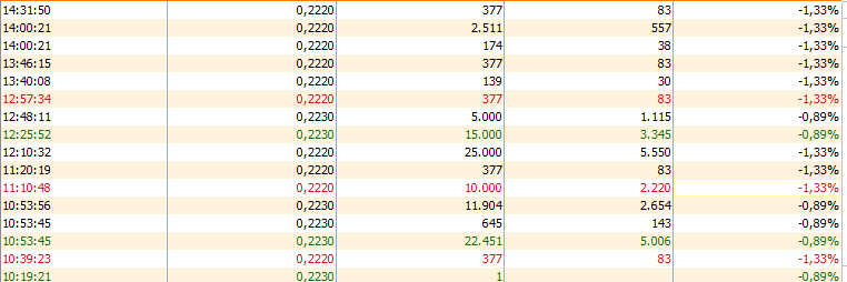 Se están intercambiando mini paquetes a 0,222 ridículos. Los grandes por encima