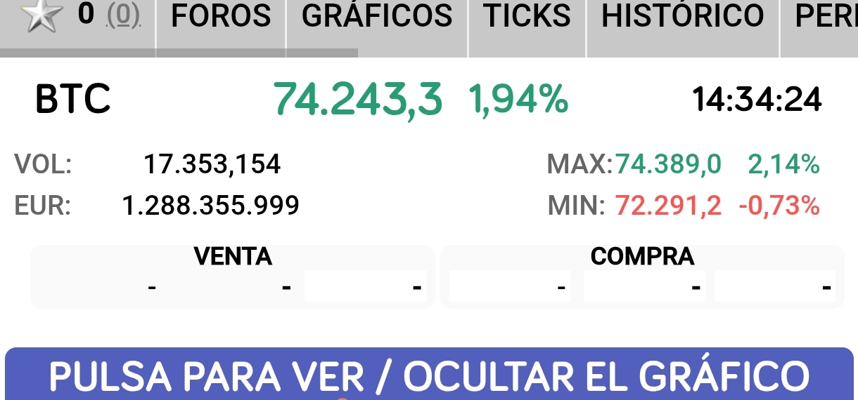 buenos días. Anoche el bitcoin estuvo ya en 76000 dólares. Este mes llega a los 85