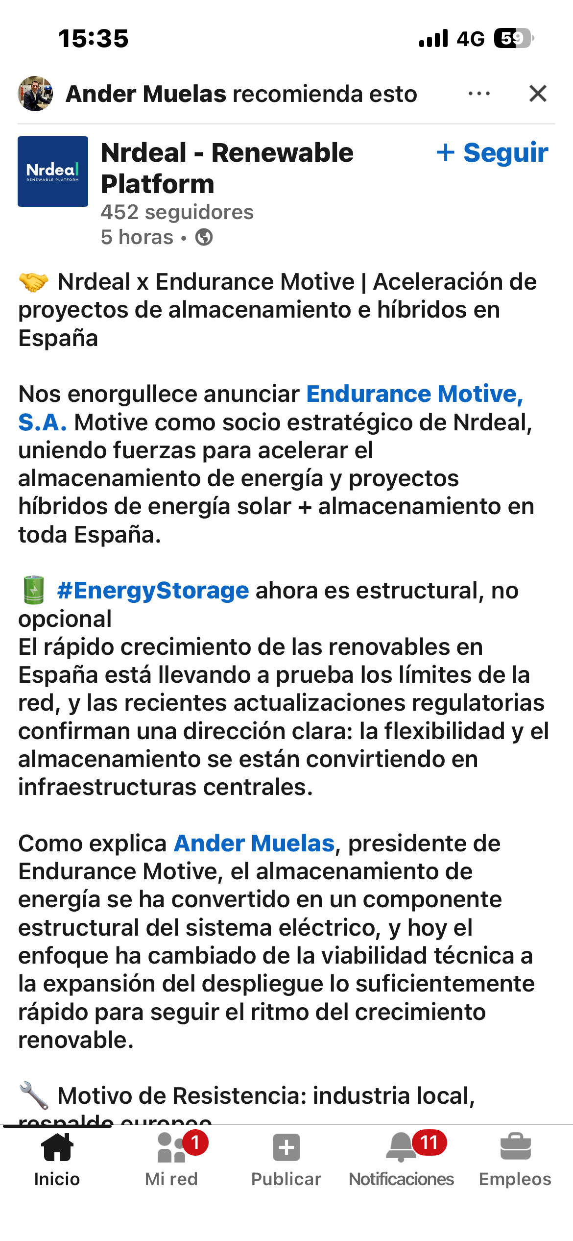 Carlos Navarro recomendando en Linkedin baterías End de tractores eléctricos aeropuertos, montacargas , sector automotriz y placas solares con hibridacion BESS etc….