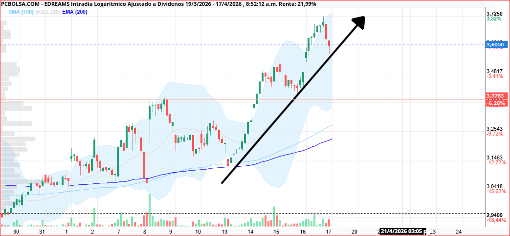 ahora mismo ya no hay resistencias hasta los 4, 4.1 , puede corregir puntualmente un dia o unas horas pero ya esta... la semana que viene esos 4, 4.1 se tocaran y quizas me sorprenda como esta semana y se pasen ¡¡¡