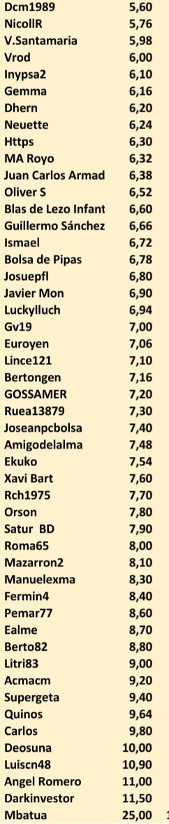 (No sé si acierto en los números) 52, Neueetes, 6,20 53, Ismael.est, 6,72 54, OliverS, 6,52 55 … Es..........