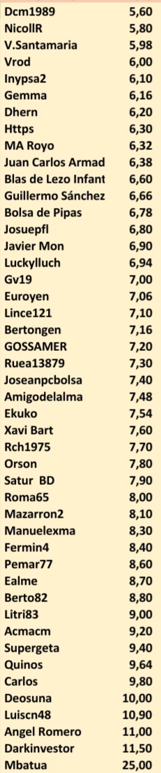 (No sé si acierto en los números) 52, Neueetes, 6,20 53, Ismael.est, 6,72 54, OliverS, 6,52 55 … Es..........
