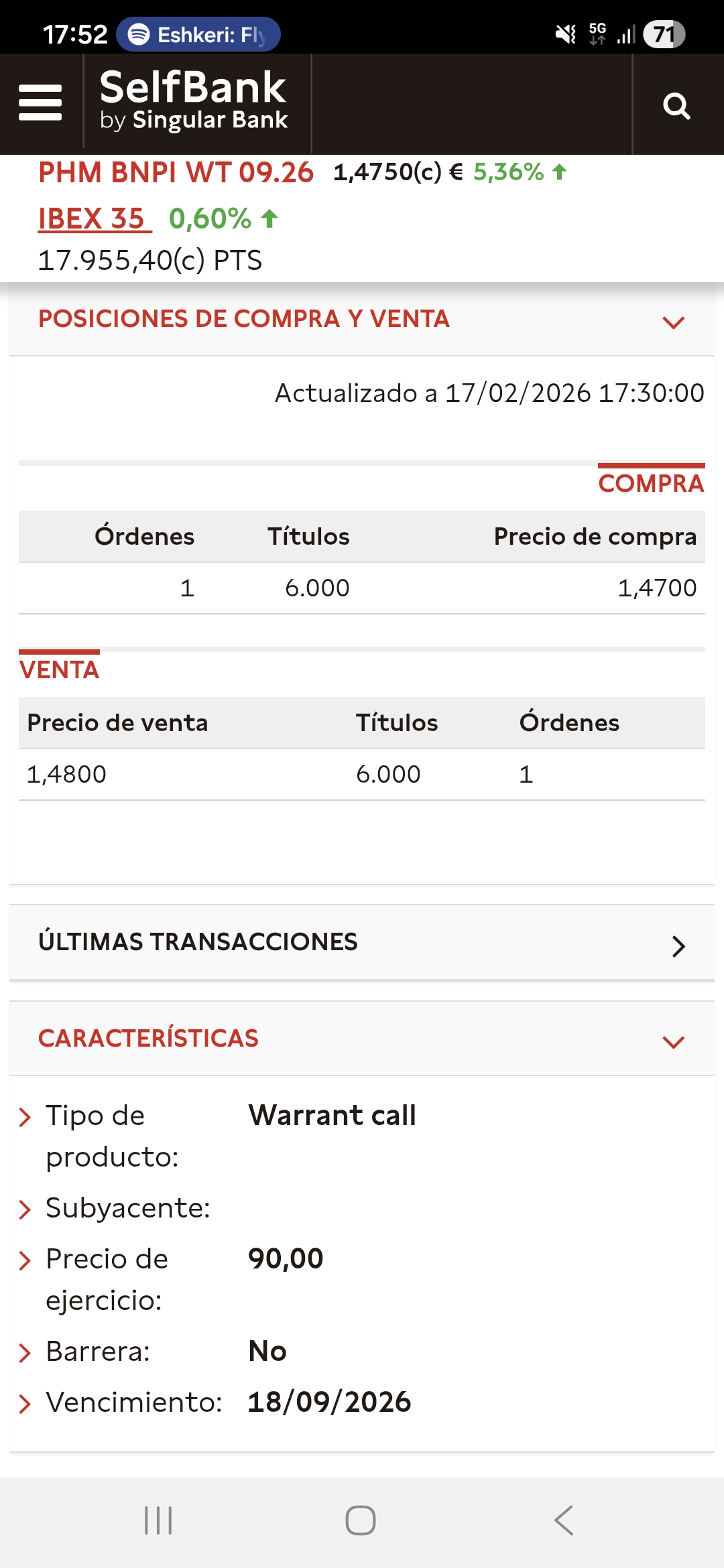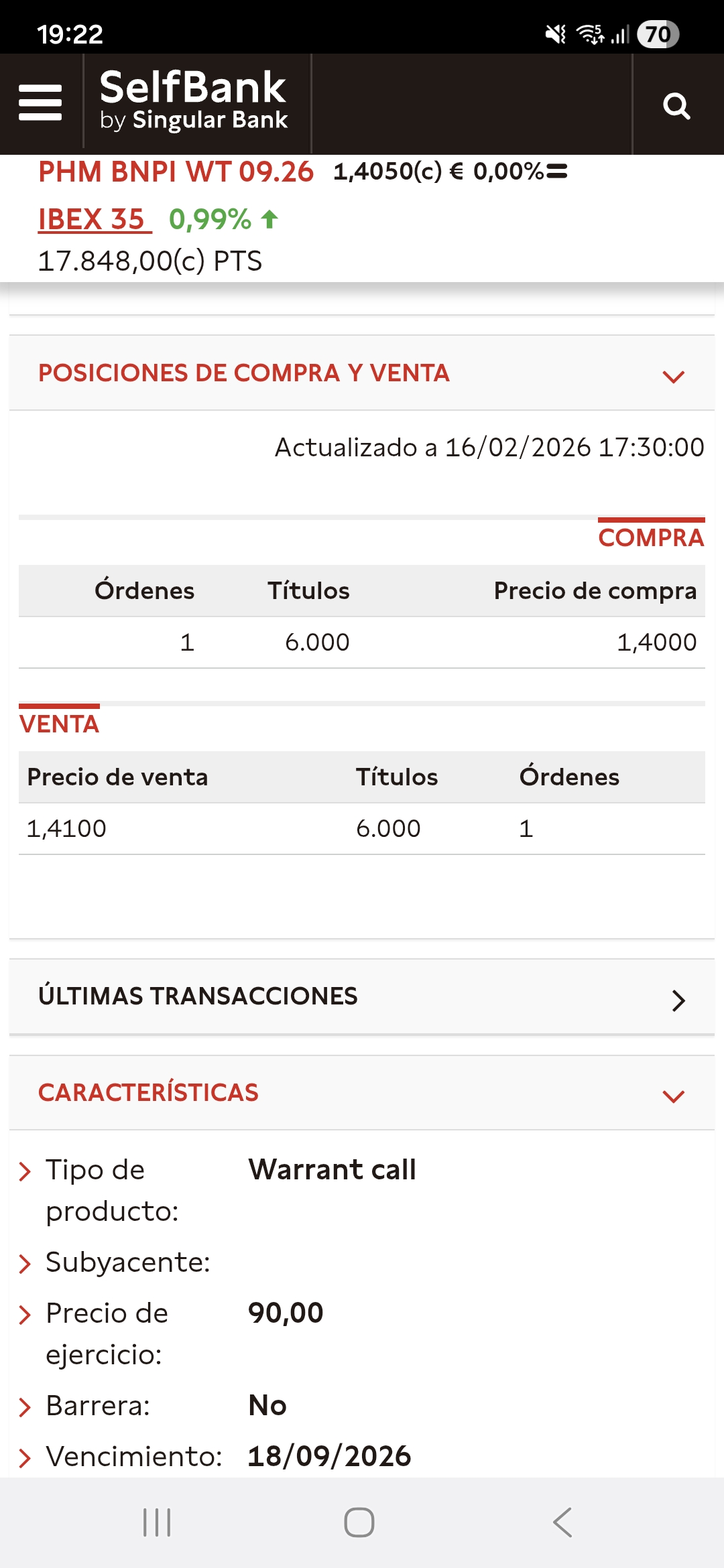 Una posible estrategia con warrants para los próximos 2 meses: NLBNPES1LGQ6 Warrant Call Emisor ..........