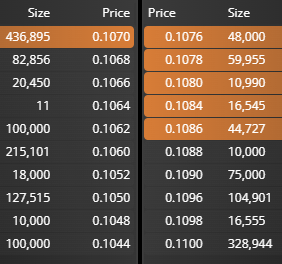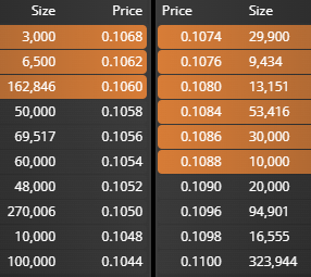 En 107, 106 y 105 hay buenas posiciones de compra, mientras que por arriba en sus homólogas son inferiores. No quiere decir nada, pero algo es algo. Por cierto, ¿porqué en mi plataforma XTB no puedo comprar en 1072 ó 1078 y sí aparecen en Market Viewer?