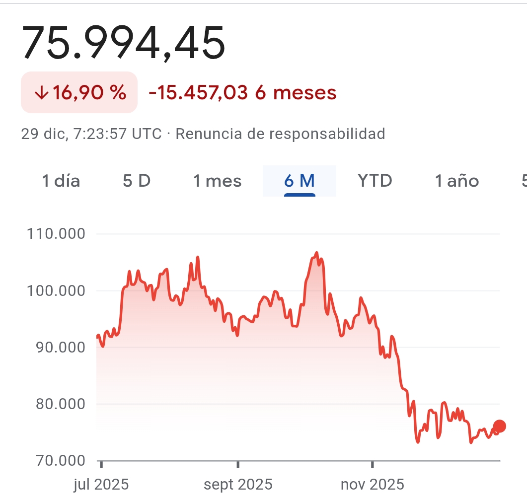 El bitcoin cerca de mínimos de los últimos 6 meses.., que decís tanto que no para de subir que alguno se lo va a creer