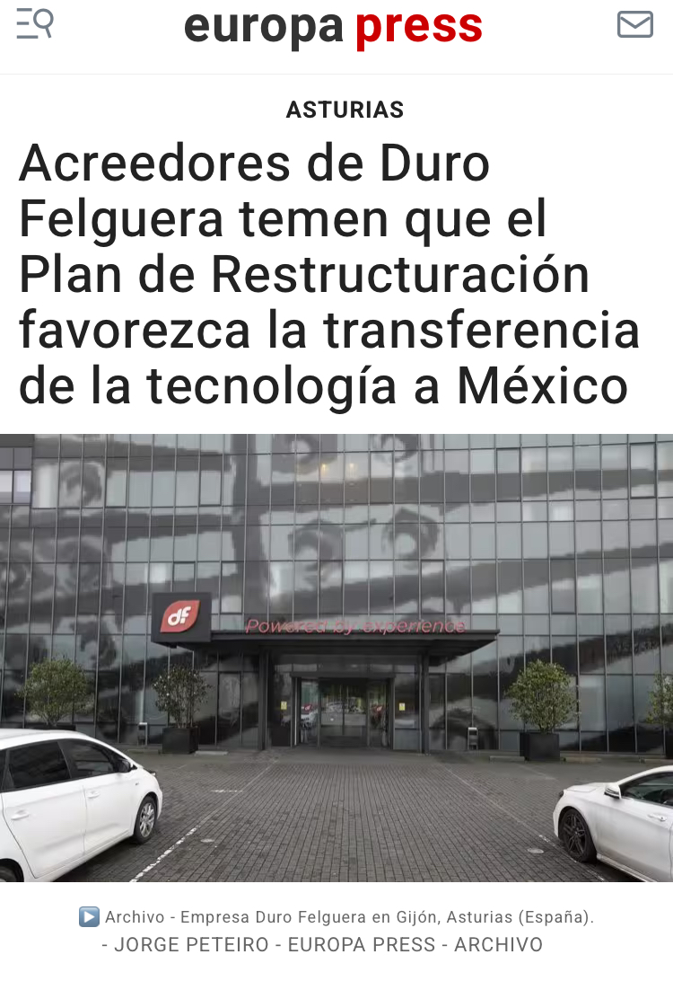 Es una noticia publicada sobre Duro Felguera. Nosotros siempre hemos tenido claro lo que estaba pasando y lo que podía pasar si no nos uníamos para defender nuestra inversión, igual ahora muchos, nos consta, se dan cuenta de que intentamos algo bueno para todos